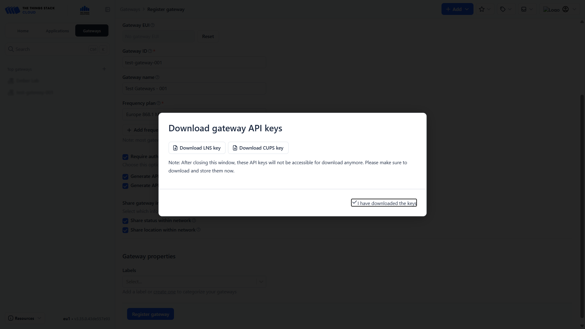 These keys are required when configuring the gateway interfaces (see the documentation for your specific gateway under the LNS & CUPS section).