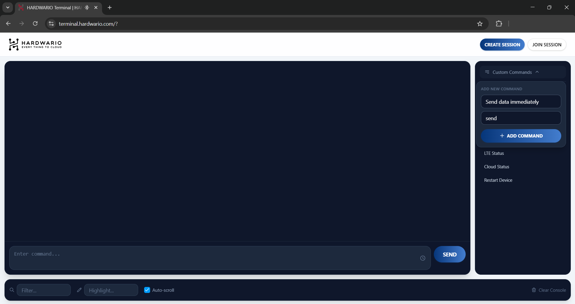 The HARDWARIO Terminal is a Google Chrome-based terminal tool that allows users to interact directly with HARDWARIO devices and modules through their browser, all without the need to install additional software.