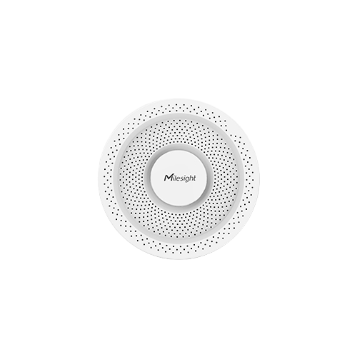 Milesight GS601 is a ceiling-mounted vape and smoke detector designed for smoke-free environments including schools, apartments, hotels, and stairwells. It uses laser scattering technology to detect e-cigarettes, traditional cigarettes, and marijuana with high accuracy, while also monitoring temperature, humidity, particulate matter (PM1.0/2.5/10), and TVOC. The sensor features anti-tamper protection, real-time alerts via buzzer (70 dB) and LED indicators, IP30 rating, and LoRaWAN Class C connectivity for comprehensive air quality monitoring and enforcement.